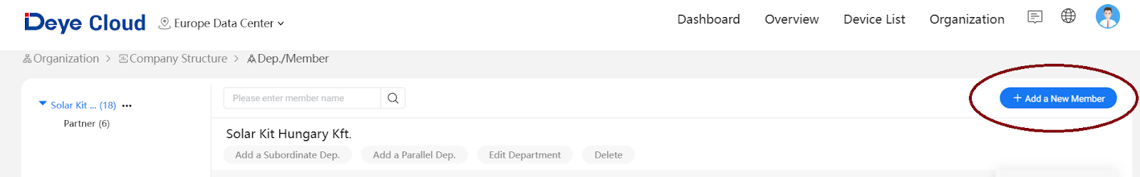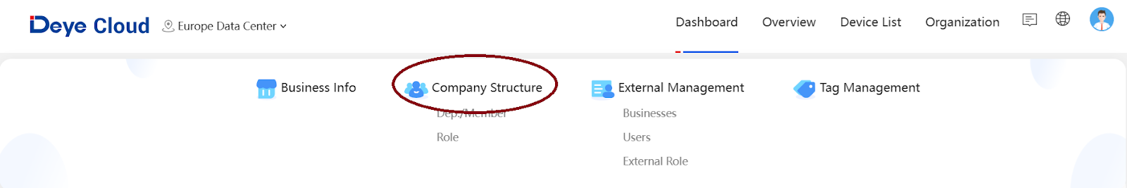 - Within the Company Structure menu, you can view all partners you have already registered and edit their roles if necessary.