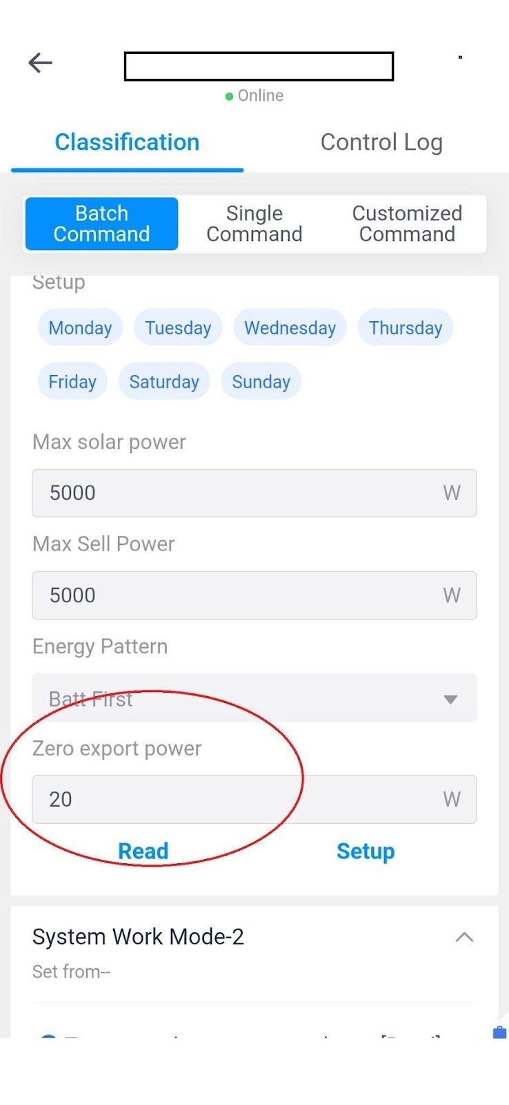 To enable feed-in limitation, the System Work Mode should generally be set to Zero Export to CT.