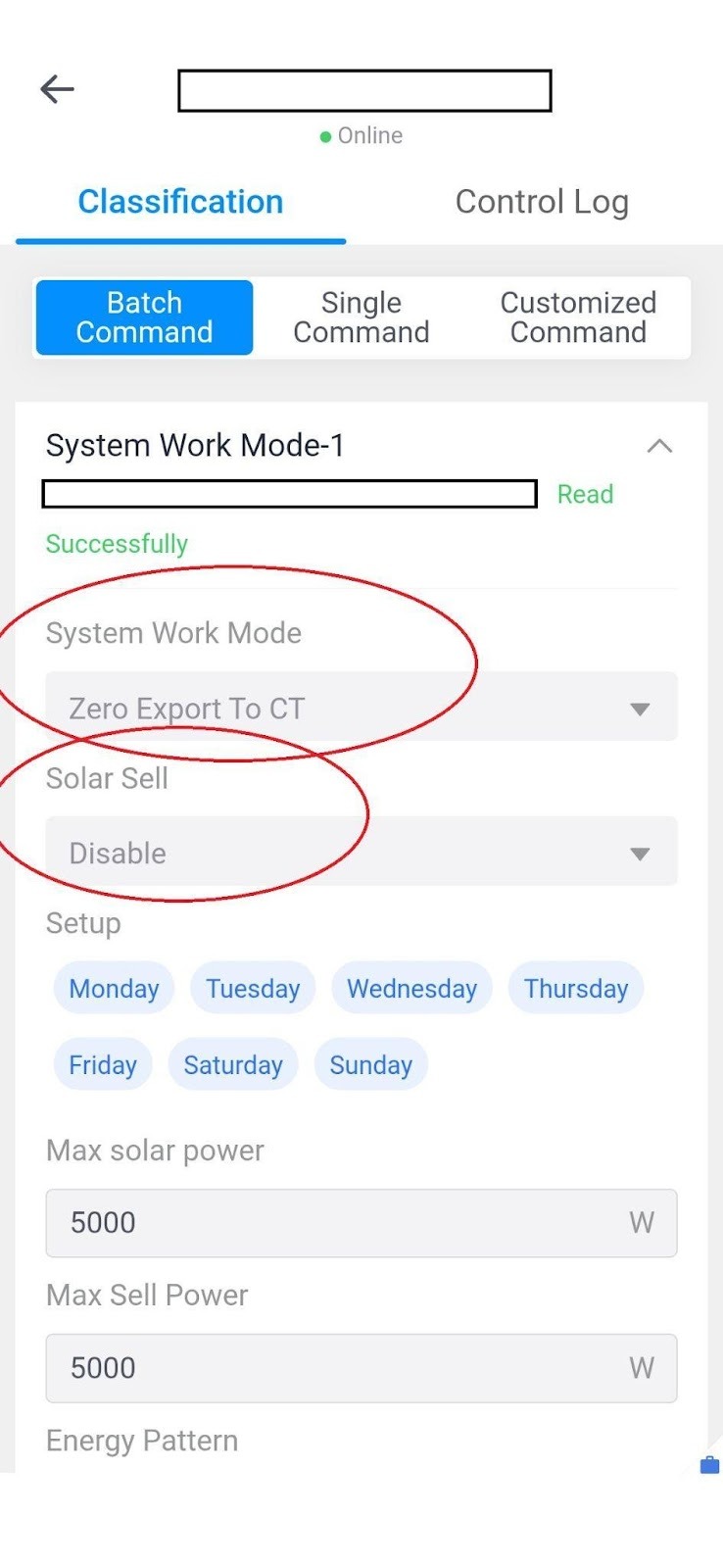 The Solar Sell option must always be disabled to achieve proper feed-in restriction.
