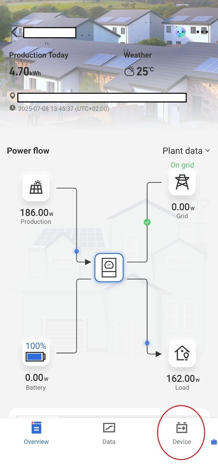 The Zero Export to CT mode ensures that the hybrid inverter, using CT current transformer clamps, detects the power consumption on the grid input line and limits output so that it does not exceed the consumption.