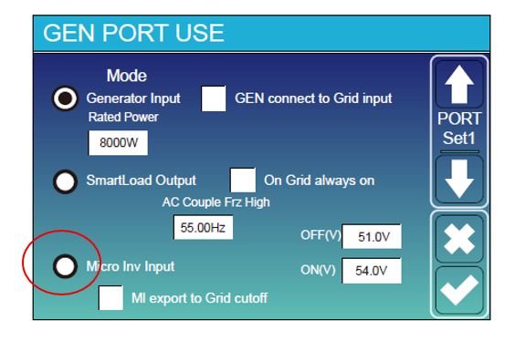 By entering the settings, under the Gen Port Use menu, you will find the configuration options for the Micro Inverter Input.