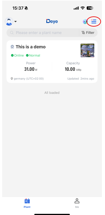 After this, the device will be back online, and upon reopening Deye Cloud, you will see your plant information displayed as usual.