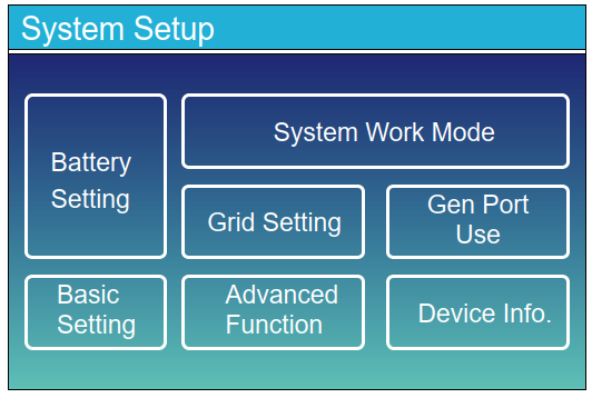 Access the Settings menu located in the upper right corner of the inverter’s LCD screen.