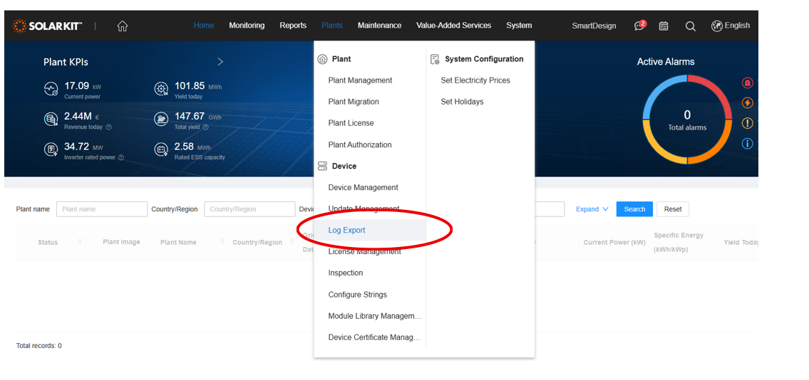 - In the Plant tab, enter the plant name to find the specific site, then click the Search button.