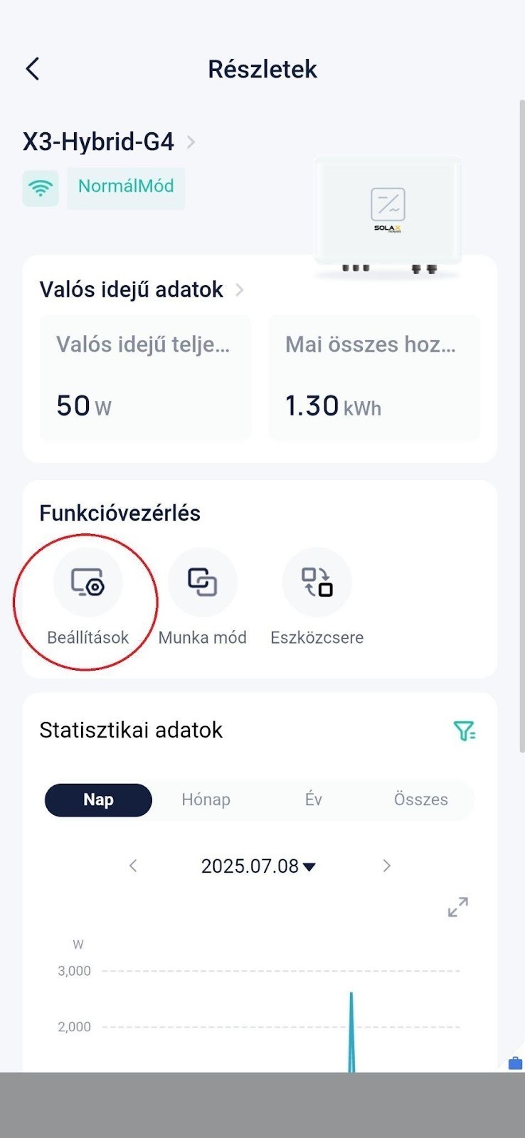 Under the Devices menu, locate your inverter. By selecting it, you can access the detailed device information.