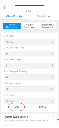 4.lépés A beállításokon belül az akkumulátor opcióival találkozunk az első sorokban, a beállítások módosítása előtt, mindig a read menüponttal töltsük be a jelenlegi beállított értékeket.