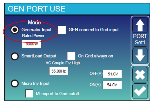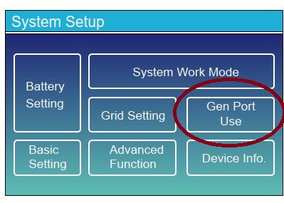 A beállításokba belépve, a Gen port use menüpont alatt fogjuk megtalálni a micro inv intput beállítási lehetőségeit.