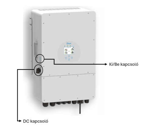 Bemutatjuk a Deye SG04LP3 kívülről látható részeit, azok funkcióit, valamint a visszajelzők jelentését.