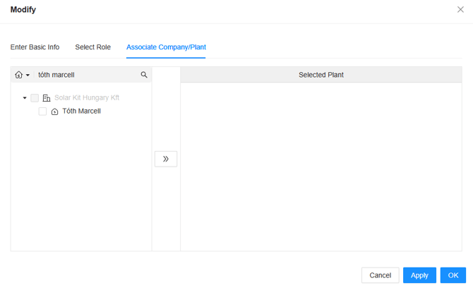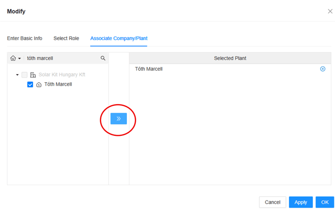 Előfordulhat, hogy egy már meglévő üzemet át kell helyezni másik felhasználóhoz, mondjuk egy ház vásárlás során. Ilyenkor a Fusion Solar admin felületéről ezt meg tudjuk tenni.