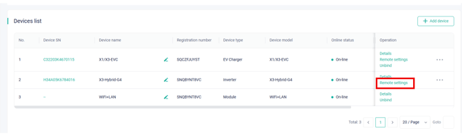 - Ezen belül az inverter mellett válasszuk a remote settings / távoli beállítás menüt